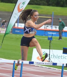 This was a great result for the 15 year old from Stirling as she took on and beat her rivals from Ireland and Wales in the under 18 400m Hurdles. This was a familiar venue for Emma as she was returning to Dublin 3 weeks after she made her international debut at the schools international. She earned her international selections for the schools international and Celtic games after some impressive performances earlier in the season including victory in the under 17 300m hurdles at the Scottish schools in a new club record in June.