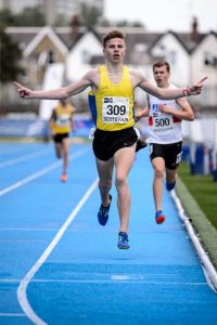 Lewis Dow dominated his 1500m race hitting the front then holding off the opposition to hang on for gold by a 1 second margin in a fast race.  His time was a superb 4:17.25 which was not only close to a championship record, it smashed the club record that had stood since 1979.