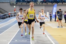 Central AC’s Ben McMillan was on superb form as he took gold in the 1,500m at the Scottish Under-17 Indoor Championships at the Emirates Arena in Glasgow, one of 3 medals won by Central AC athletes at the event. After taking silver at the equivalent Under-15 event 2 years ago, the 16 year old from Stirling has had a difficult time since then with injuries but having recovered came out at the indoor championships to see what form he was on. The question was answered emphatically as he led the final from start to finish and stormed away from the field in the last lap for a win that surprised even himself, in 4:17.52 minutes. Central teammate and training partner, Lewis Dow, followed him round attempting to complete a club 1-2 but he was just outrun at the finish ending in 4th place with 4:18.38 minutes.
