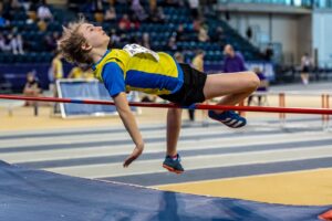 Central Athletic Club saw three young male athletes joining a very strong field to tackle the Under-15 Pentathlon: Lewis Miller, Jamie Connor and Cameron Moore. Cameron was first up in 60 Metres Hurdles and ran strongly to finish second in his heat in a time of 11.86 seconds, nearly 0.3s quicker than his previous best set two weeks earlier. Jamie and Lewis were in the second heat: having hit a hurdle hard in the warm up, Lewis was a little more cautious than usual during the race and both he and Jamie finished a little shy of their personal bests in fourth and eighth respectively in a very quick heat, meaning that after the first event Lewis was fourth, Jamie ninth and Cameron 11th of the 15 entrants.