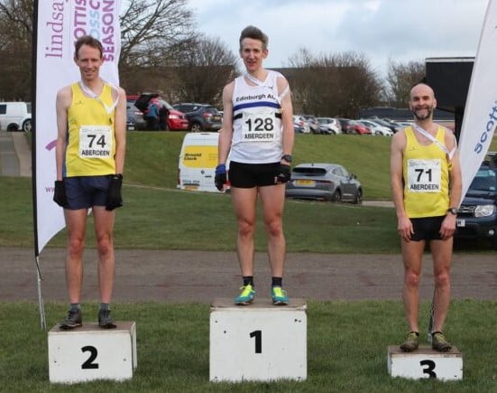The Lindsays Masters Cross Country Championships proved a good test for the over 40s at Aberdeen’s Balgownie playing fields on Saturday. Here it was Edinburgh AC’s Ewan Cameron (26:20) who picked up his first national title with Central Athletic Club’s duo of Ross Houston (26:31) and Scott Brember (27:06) taking the silver and bronze medals and Scott also capturing the M45 title.