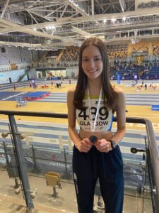 The 60 Metres sprint saw all three of them race together, Katherine progressing to the semi-finals where she was just edged out of a place in the final after running a season’s best 8.16s for 10th place. Megan Dunlop ran 8.58s for 19th quickest and Ellen Montgomery set a personal best 9.03s for 25th.