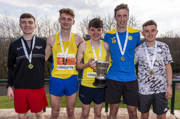 Central Athletic Club’s men’s B team were also well to the fore with fine runs from Josh Wood (16:09), Luca Fanottoli (30:46), Dale Colley (16:18), Calum Phillip (30:08), Scott Brember (16:17) and Kieran Reilly (29:44) with the team finishing in a superb fifth place overall. There was also some fine running from the older members of the Club with an Over-40 team of Jens Subke (19:07), Ewan Jack (34:15), Colin Alexander (25:20), Colin Sinclair (47:01), Cameron Campbell (25:32) and Allan Gall (47:24) which gave Central’s supporters plenty to cheer on throughout the day. There was also no doubting the commitment of the runners in an incomplete team of Sam Grivell (17:04), Lewis McComb (33:37), Lewis Millar (17:08) and Andrew Irvine (33:27) again a mixture of youth and experience.