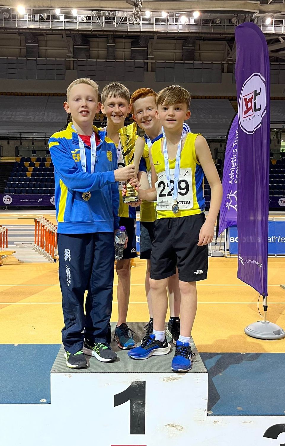 Central AC’s boys scored a superb victory in the Under-12 SUPERteams competition against 47 teams from throughout Scotland. The competition tests teams of youngsters at running, jumping and throwing, then finishes with a relay.