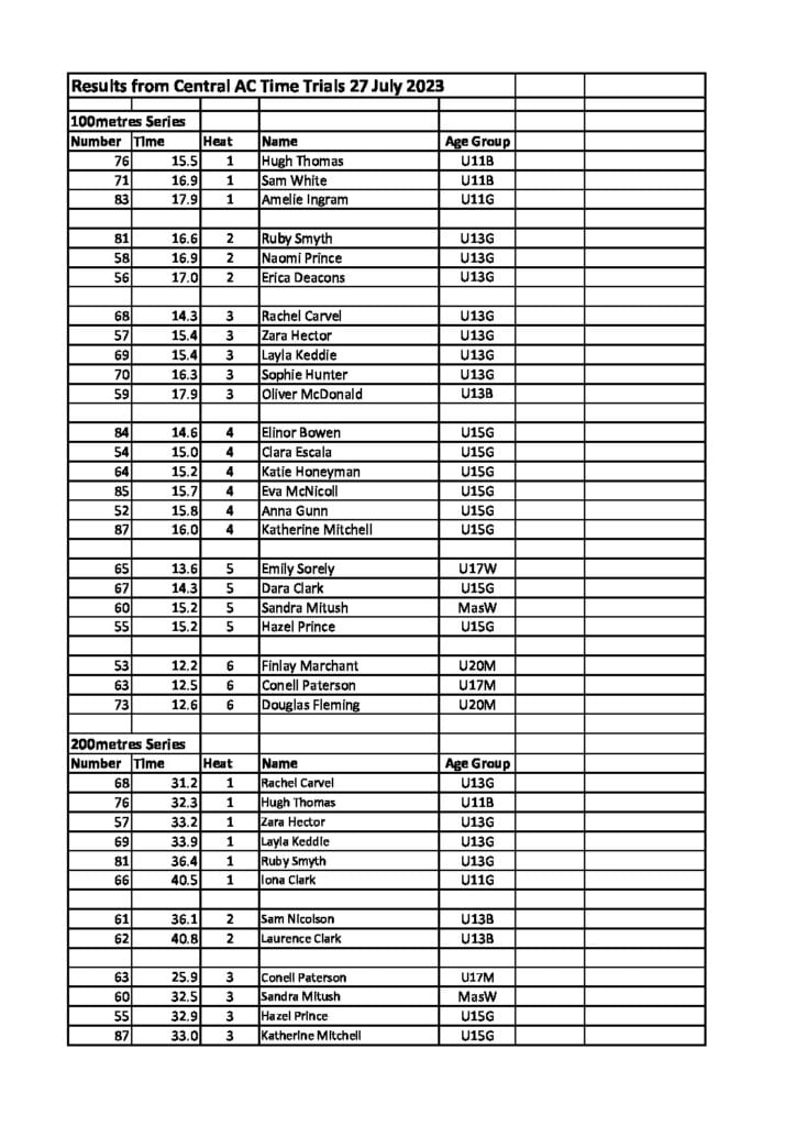 The monthly club time trials took place on Thursday 27 July at the excellent six-lane track at Lornshill Academy in Alloa in good weather. There were 39 athletes taking part with some great performances. Full results are below.