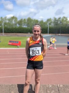 Elsewhere in the Over-17 senior age group, Central were well represented over the longer distances. Tuscany Wright was representing Balfron High for the last time ever as she made her first attempt over 3000 Metres. She dug in all the way and was rewarded with third place in a time of 10:54.13 earning her a bronze medal. This was a proud moment for Tuscany as she stepped onto the podium for the first time at a national level event after many years in the sport.
