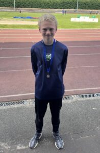 There were some good performances from Central AC’s Group C (Under-15) contingent at the Scottish Schools. Twins Rory and Harrison MacMillan of Fairview International School went head to head in the 1500 Metres race where they stayed with the leading group all the way round the race. In the final battle on the home straight the top two athletes were too fast for them but Rory and Harrison had a battle with each other for the final podium place, Rory just taking it on the line in 4:29.32 minutes for third place and bronze with Harrison just behind in 4:29.56 minutes for fourth.